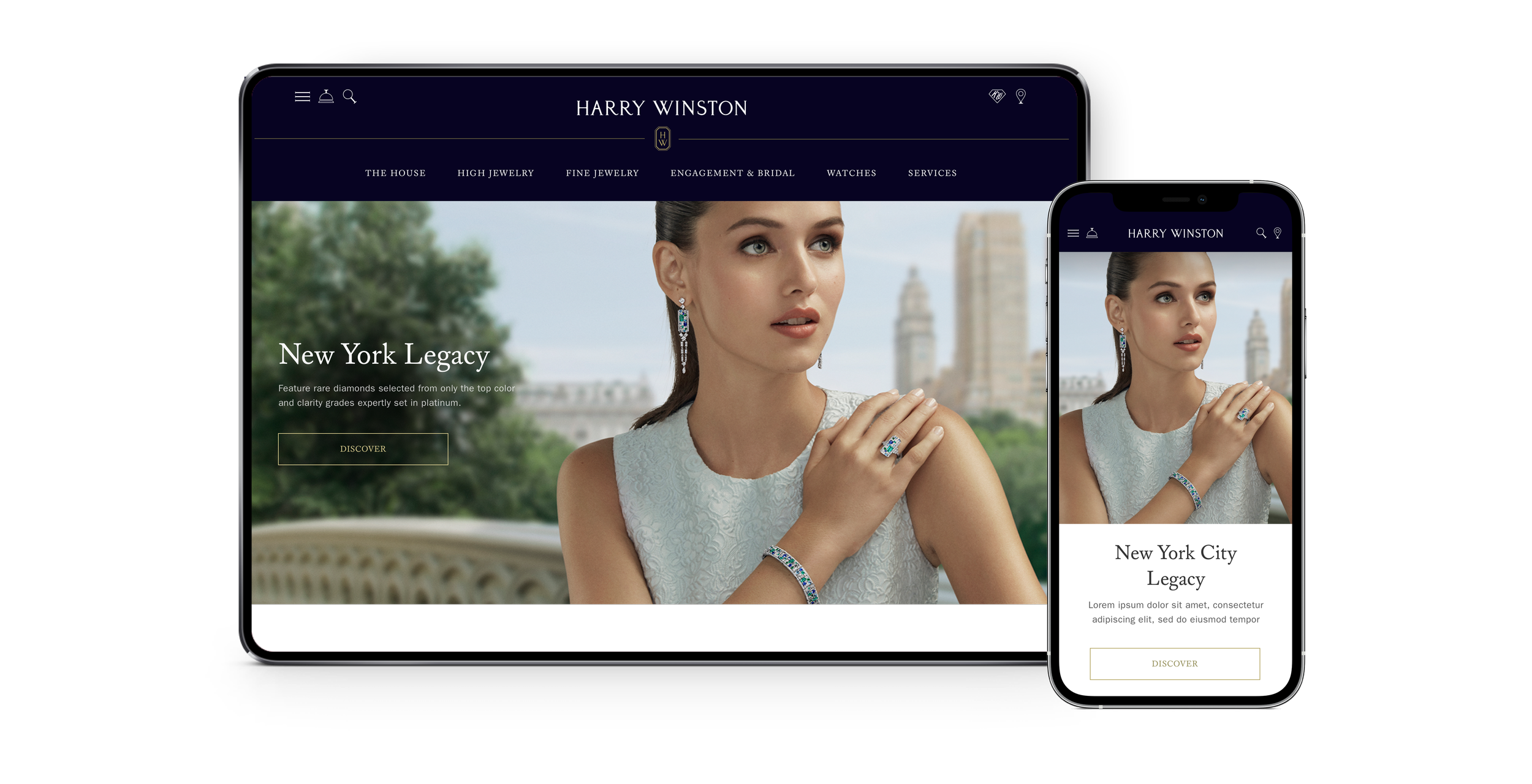 The revamp of Harry Winston’s site allows visitors to browse their extraordinary product offerings, learn about their rich heritage, and quickly get in touch with the company. Through elegant visuals and captivating storytelling, the site mimics what it would be like if the customers were in their salon in a digital format, thus driving them to actually visit the salons and experience the brands offerings. My role in the project consisted in leading the visual experience redesign from the conceptualization stage to the final delivery and launch of the website – reimagining the way a history luxury jewelry house sells their high end products through a digital platform.